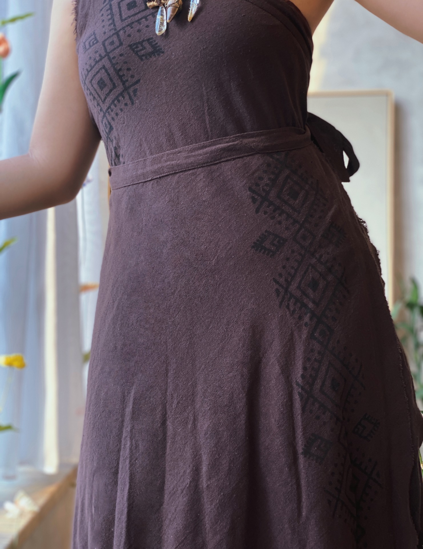 印度手工印染圖騰 多穿一片式裹裙 (啡)